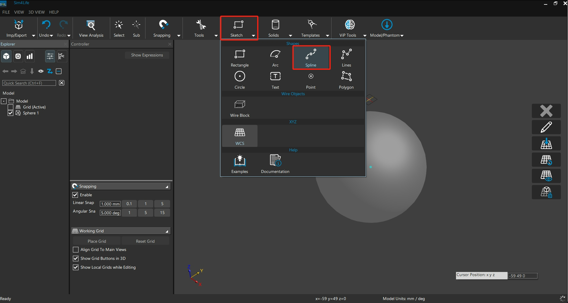 使用 Sketch 工具建立一条线段(作为环状线条的起始线)