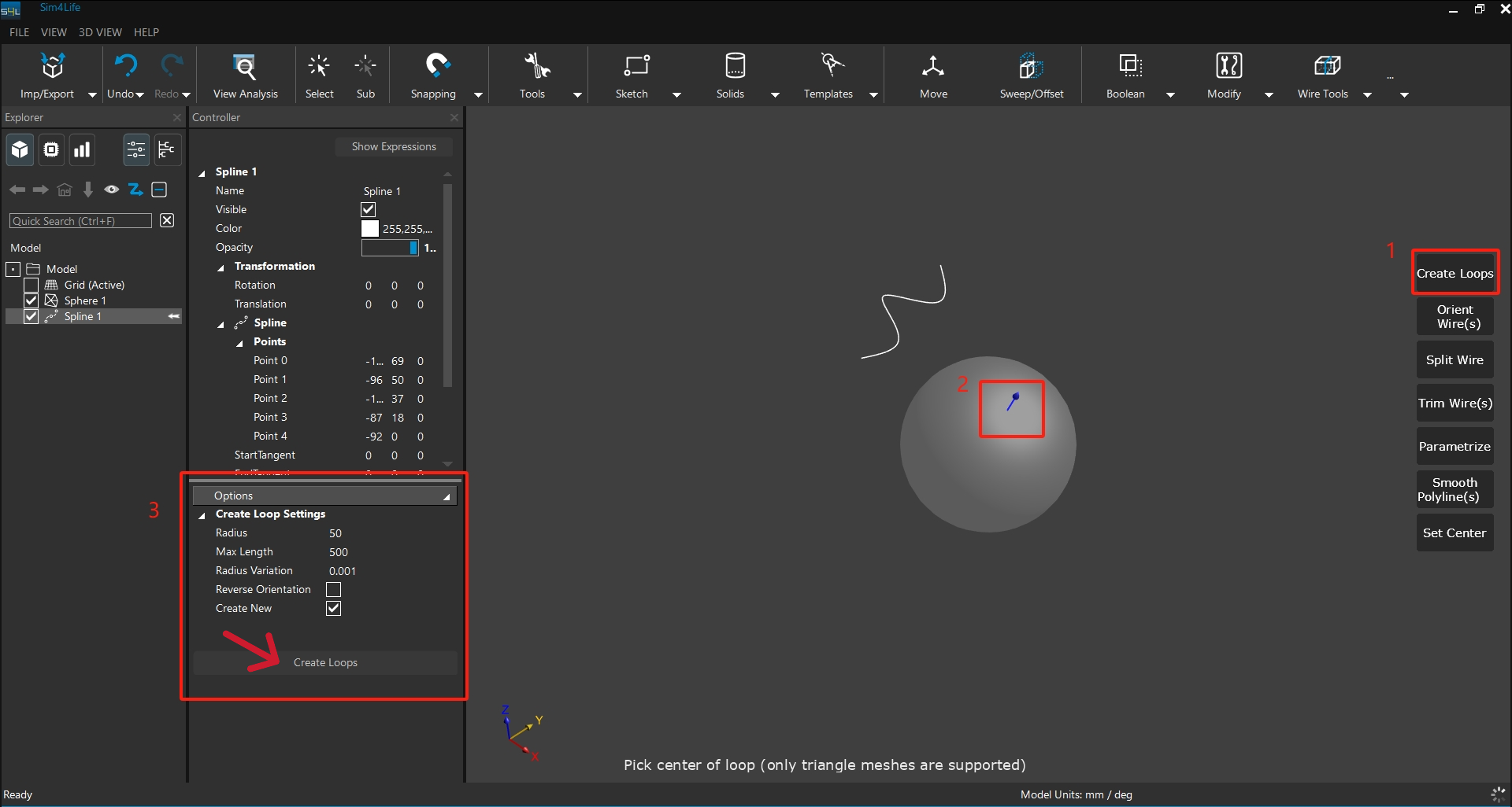 于 Controller 面板中设定 Radius(环状半径)、长度等参数,点选「Create Loops」完成建立