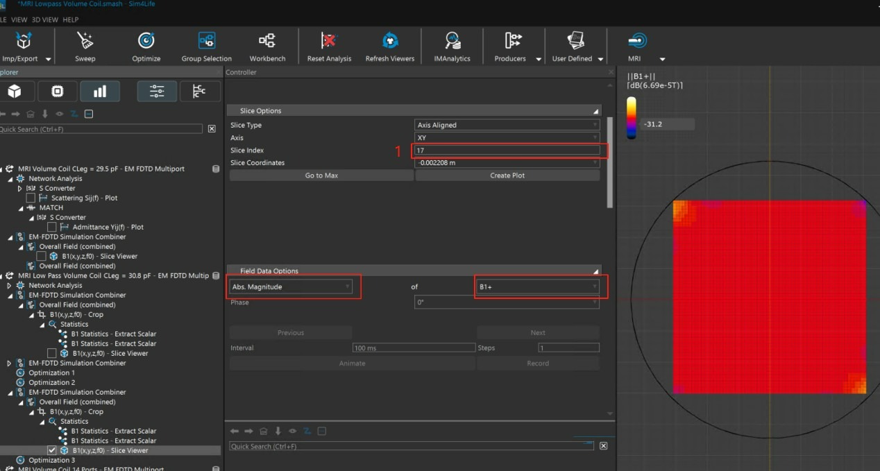 5. 在1处修改大小,可以看到B1场在不同位置的分布,同时可以看出B1场在鸟笼内部使均匀分布的。
