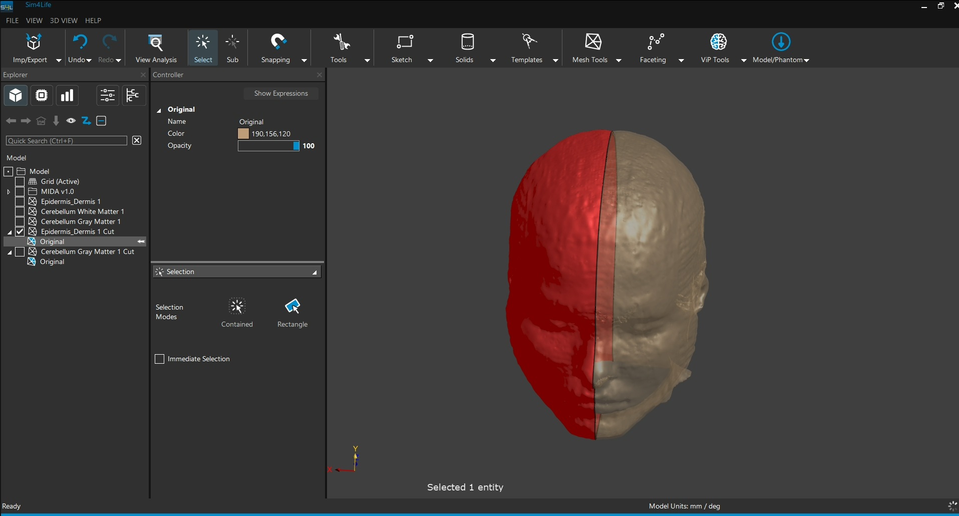 在 Explorer 的 Model 介面中,选取欲进行对称操作的模型。若该模型尚未为 mesh 格式,请先使用 To Mesh 功能将其转换为可编辑的网格物件。