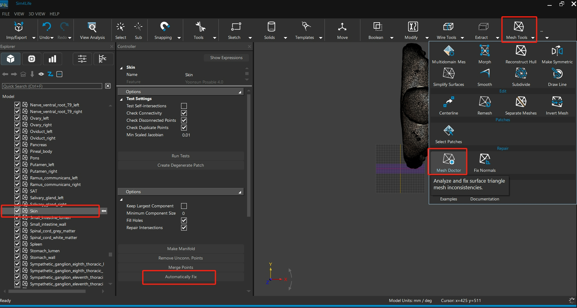 点选 Mesh Tools → Mesh Doctor