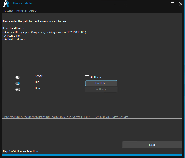 [注]: license 档案放置的路径为 C:\Users\Public\Documents\Sim4Life\8.0\Licensing Tools。若遇到无法读取的状况,请将 license 档案放置桌面,然后按下 Find File…并选择桌面上的 license 档案,License Installer 会自动将 license 档案路径指 向 C:\Users\Public\Documents\Sim4Life\8.0\Licensing Tools