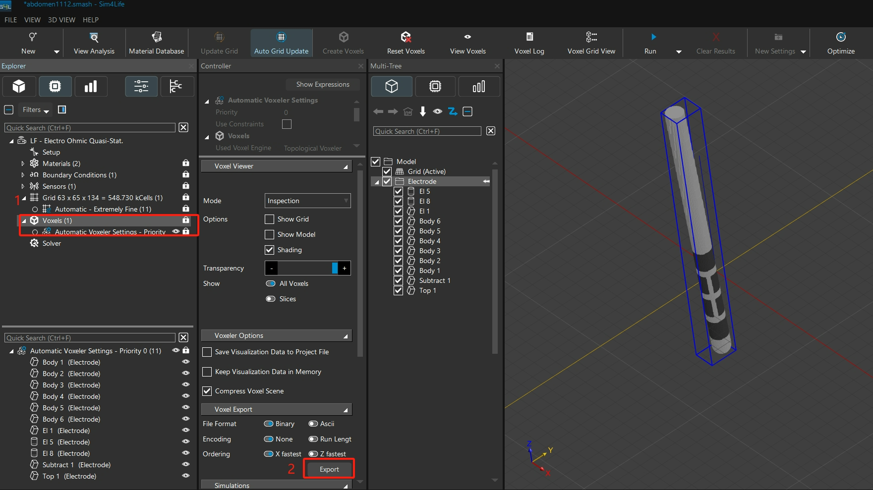 点选 Voxels 区块 → Controller 视窗 → 选择 Voxel Export