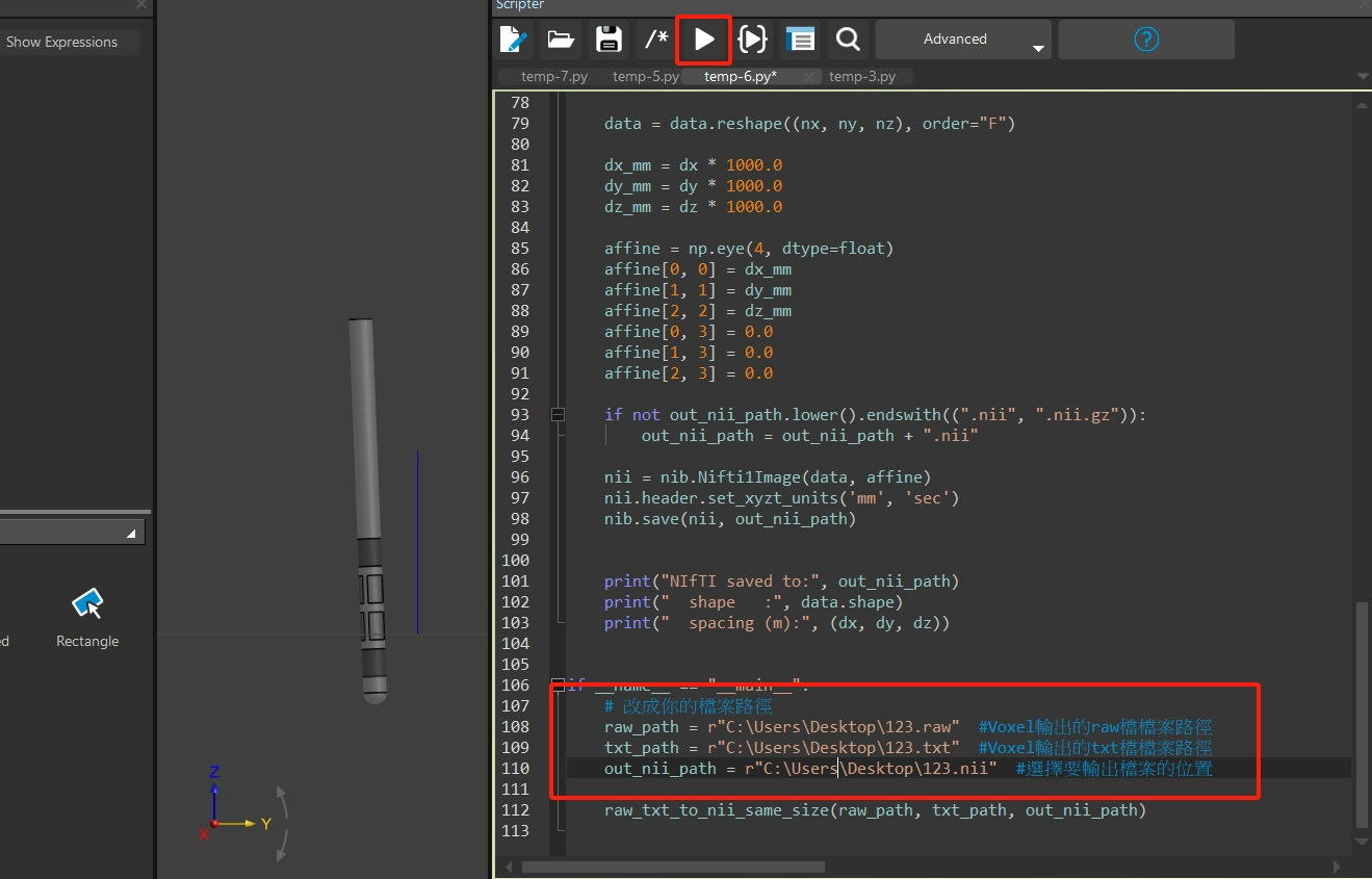 成功后 Console 将显示完成讯息,并于指定路径产出 .nii 档