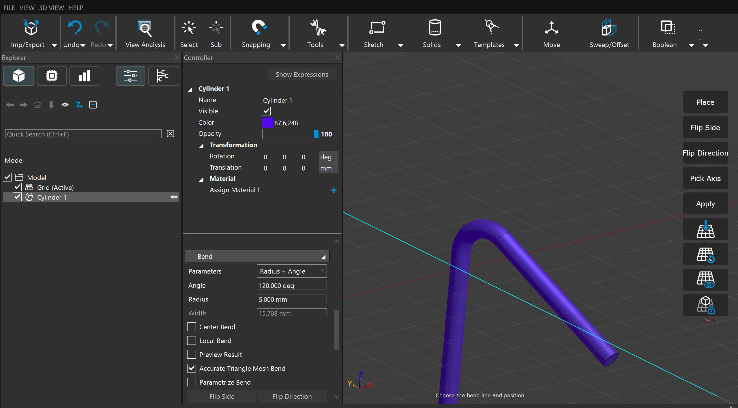 1、对图示模型进行弯曲操作(9.0版本中适用)