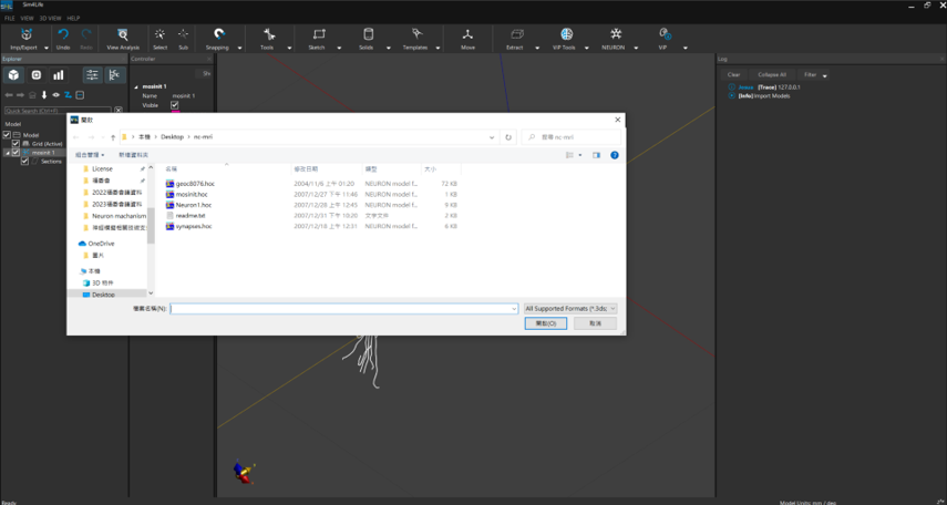 点击Import,开启 HOC 模型资料夹,选取.hoc档案并开启