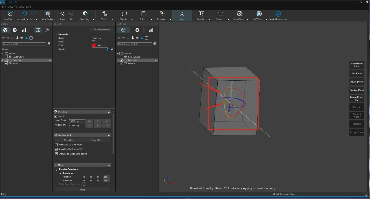 在模型建立介面中,点选欲移动的模型物件,点选上方工具列的 Move 工具