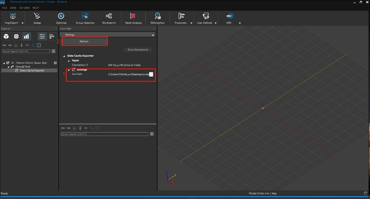 3.设定所需的电流大小,在下方栏位中找到电场结果 EM E(x,y,z,f0),右键点选并 选择 Export > Data Cache