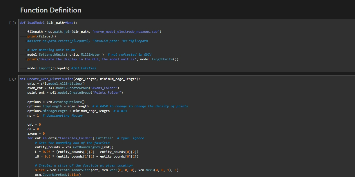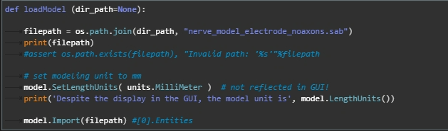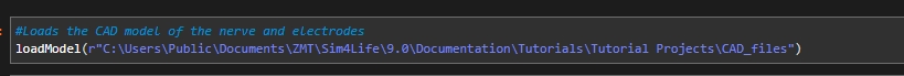 模型档案可于 Sim4Life Tutorial 文件夹下的 CAD files 中找到,分别为 DBS 与 nerve_model_electrode。 请于下方的 loadModel 函式中修改对应的档案路径