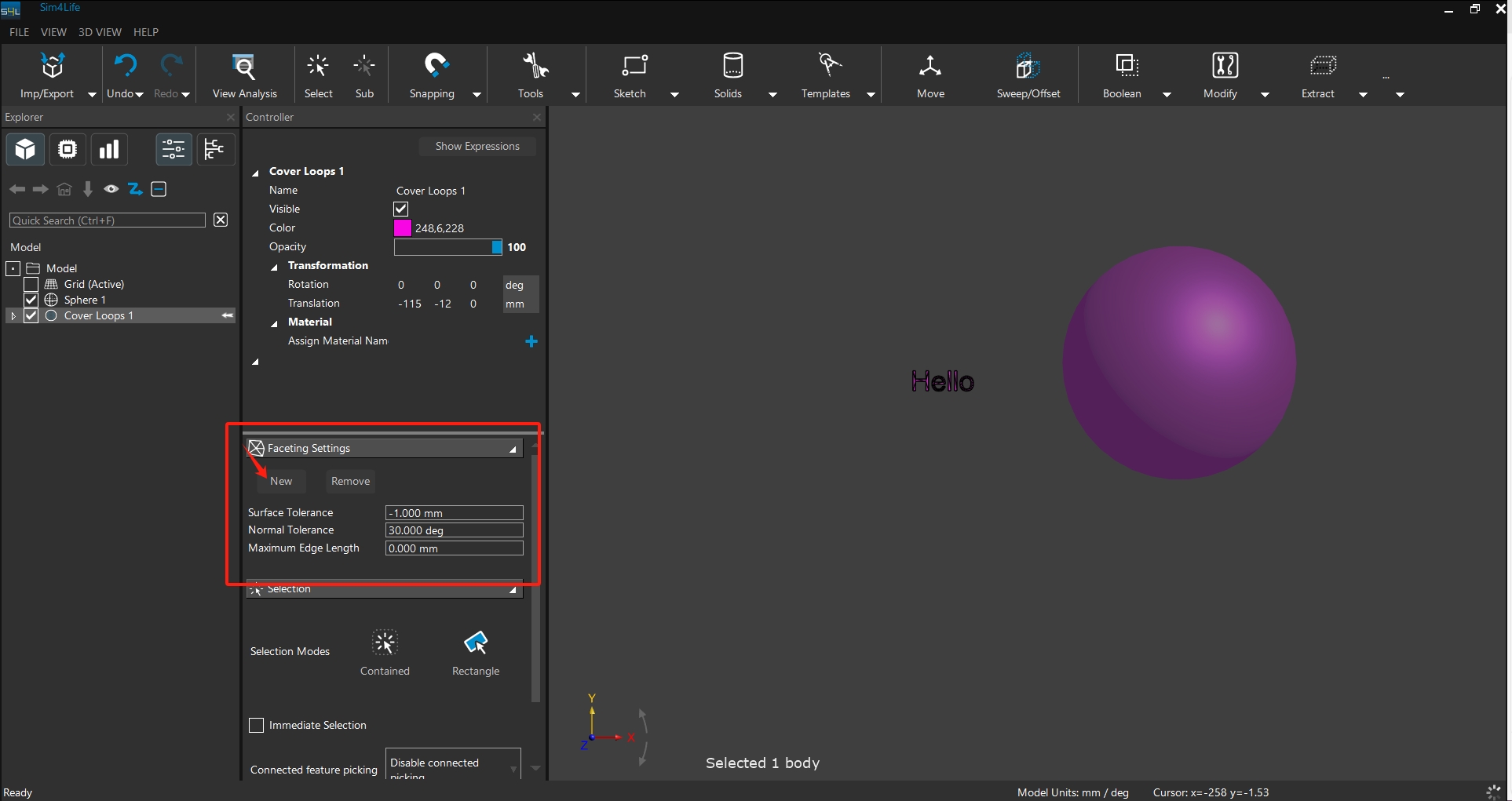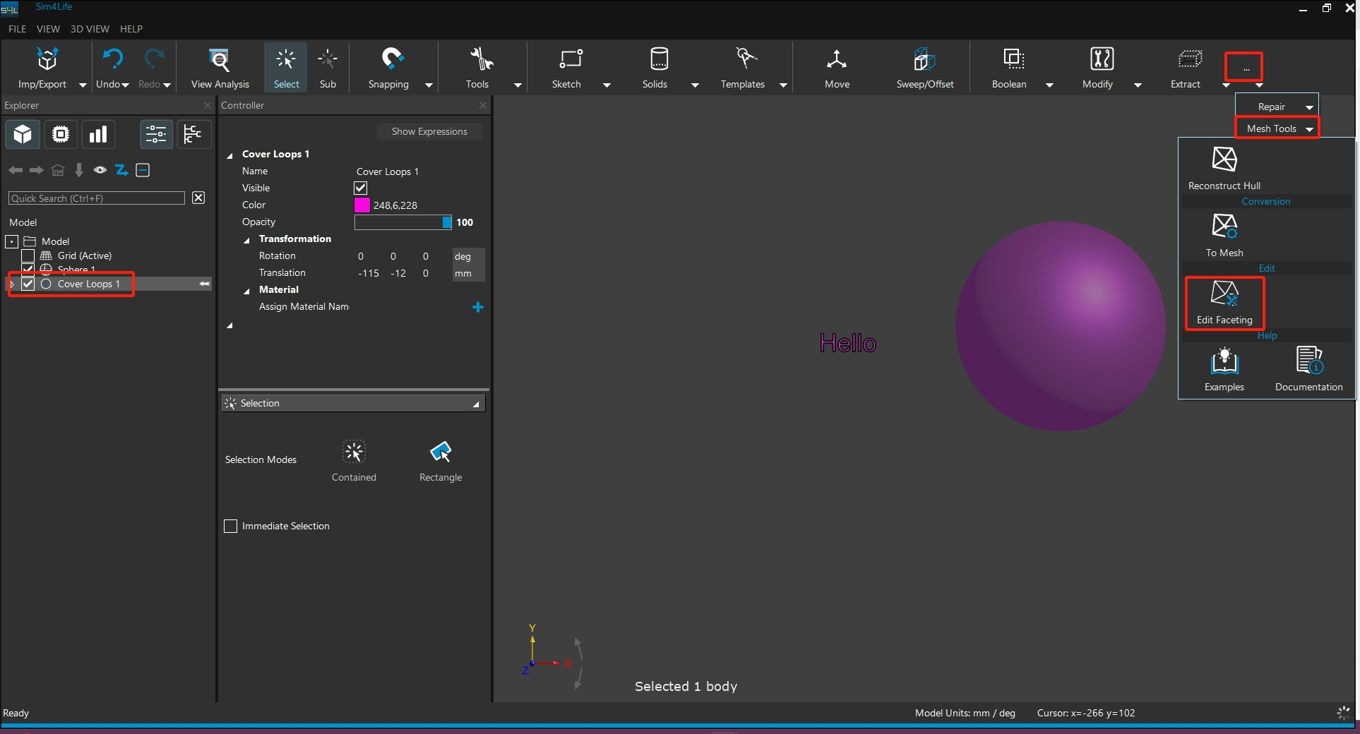 设定完 Faceting 后,点选「Mesh Tools」→「To Mesh」,将文字轮廓转为网格化实体