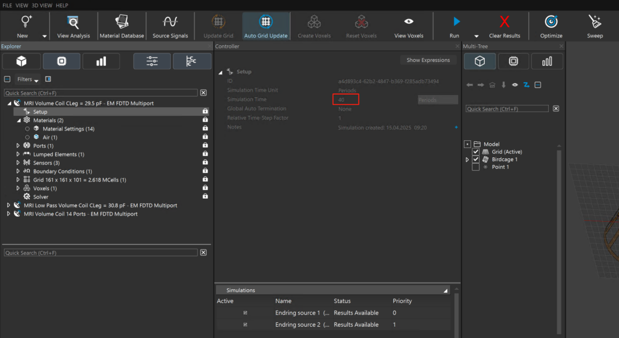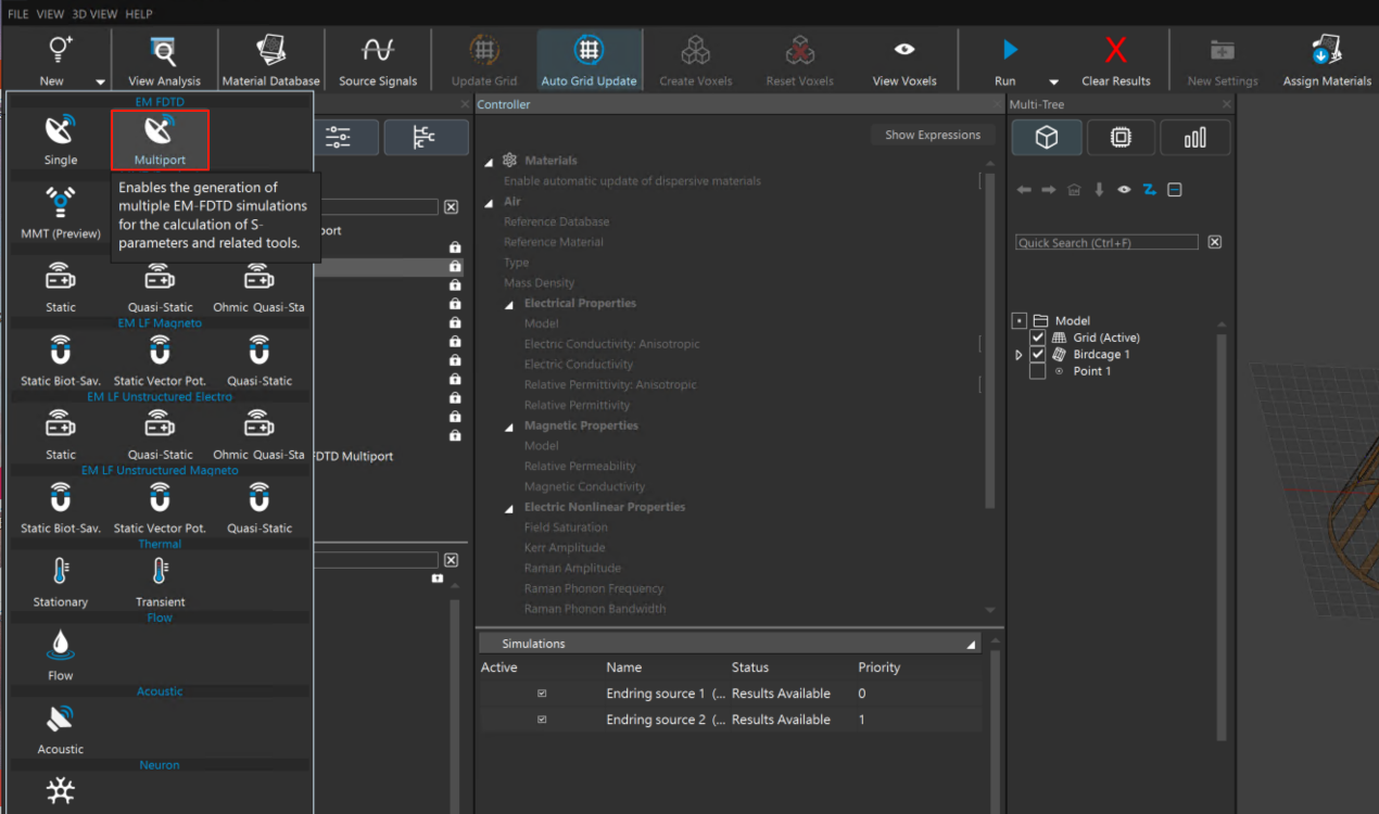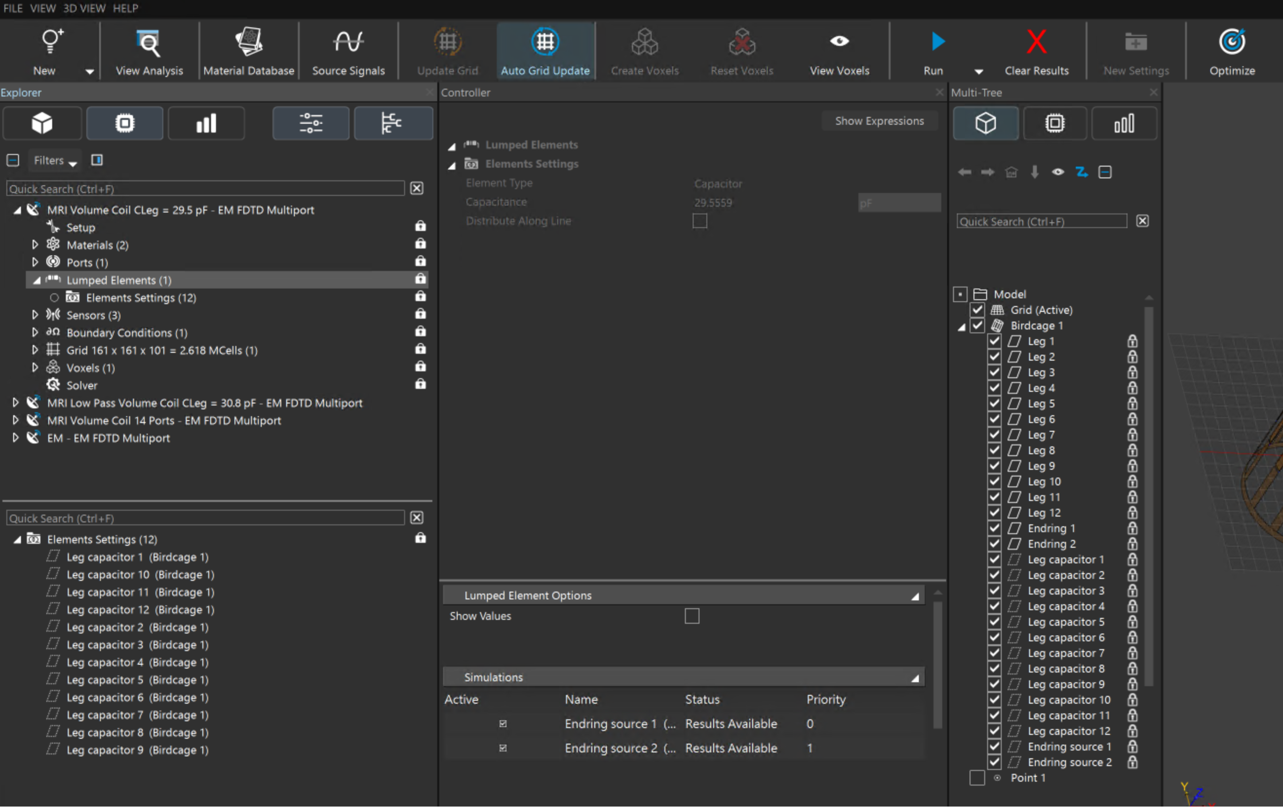 5. Lumped Elements:右键新建Elements Settings,将支腿元件放进去,Sensor设置、Boundary Condition设置、Grid网格设置、Voxels体素设置可以选择默认选项