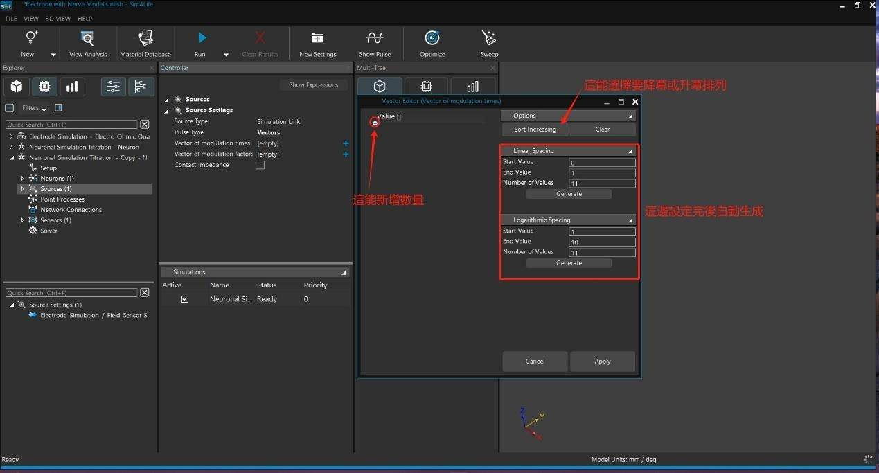 1.在神经求解器的 Source 设定中,可透过 Pulse Type 设定所需的调制波型,以模拟不同的刺激条件