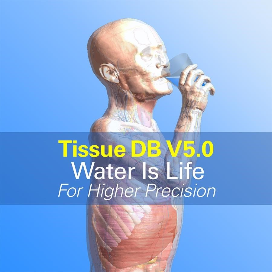 V5.0 现已涵盖所有主要组织的水含量数据 — 此关键参数决定着热容量,为未来版本提供更精确的热特性值奠定基础。本版本同时修正了肺组织血流灌注值,完整纳入肺循环系统的考虑。