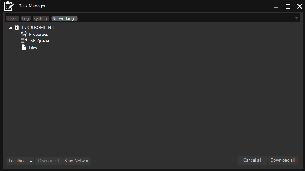 1. 打開 Task Manager,到 Networking 檢查本機有無連線。若無連線請按視窗左下角的 Localhost | Connect