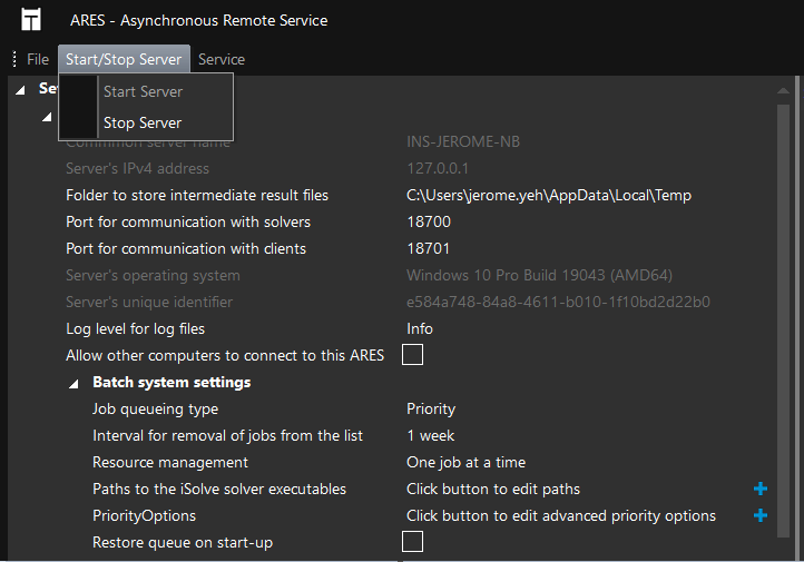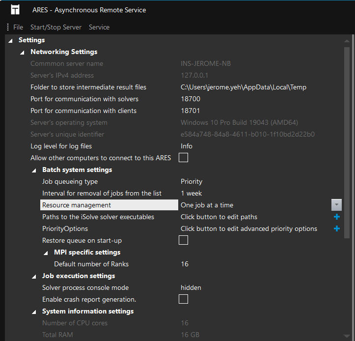 1. 開啟 ARES,設定 Resource management = One job at a time