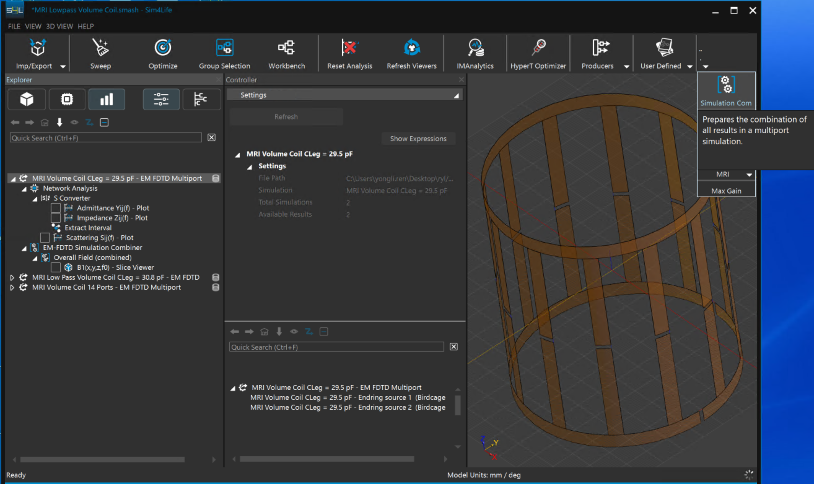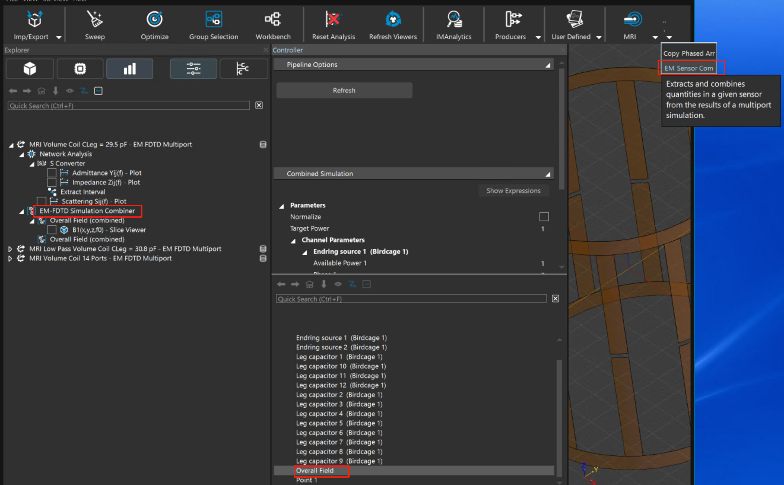 4.     點擊模擬結果檔MRI Volume Coil CLeg = 29.5 pF,選擇Simulation combiner