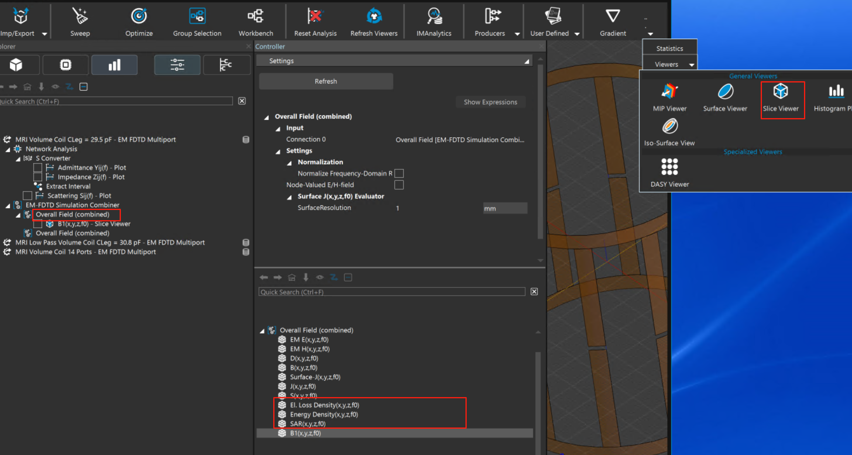 6.選擇Overall Field(combined)àB1(x,y,z,f0)àViewersàSlice Viewer