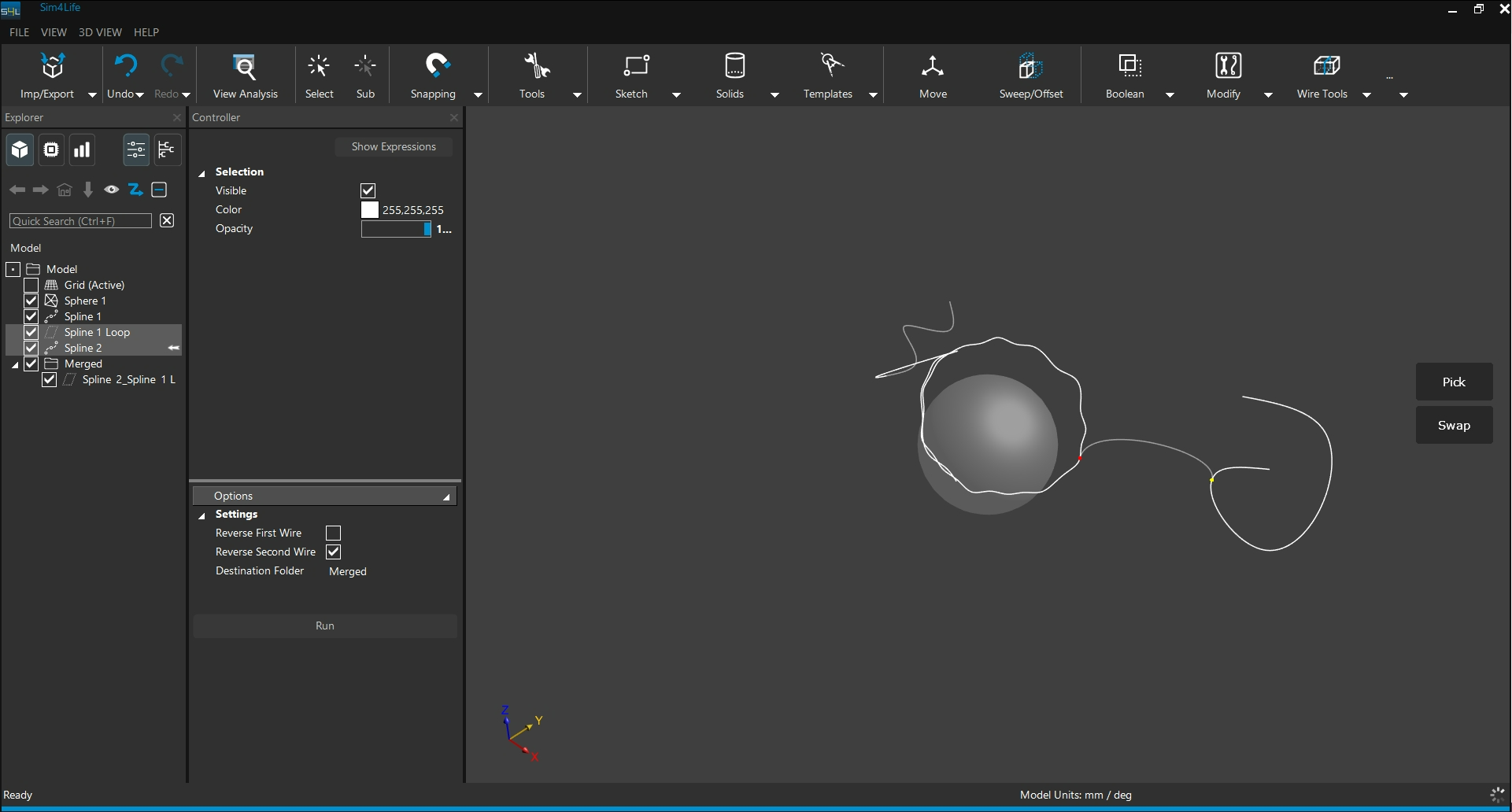 可使用右側控制區中的「Pick」選取點位置,「Swap」可將點切換至另一條線上