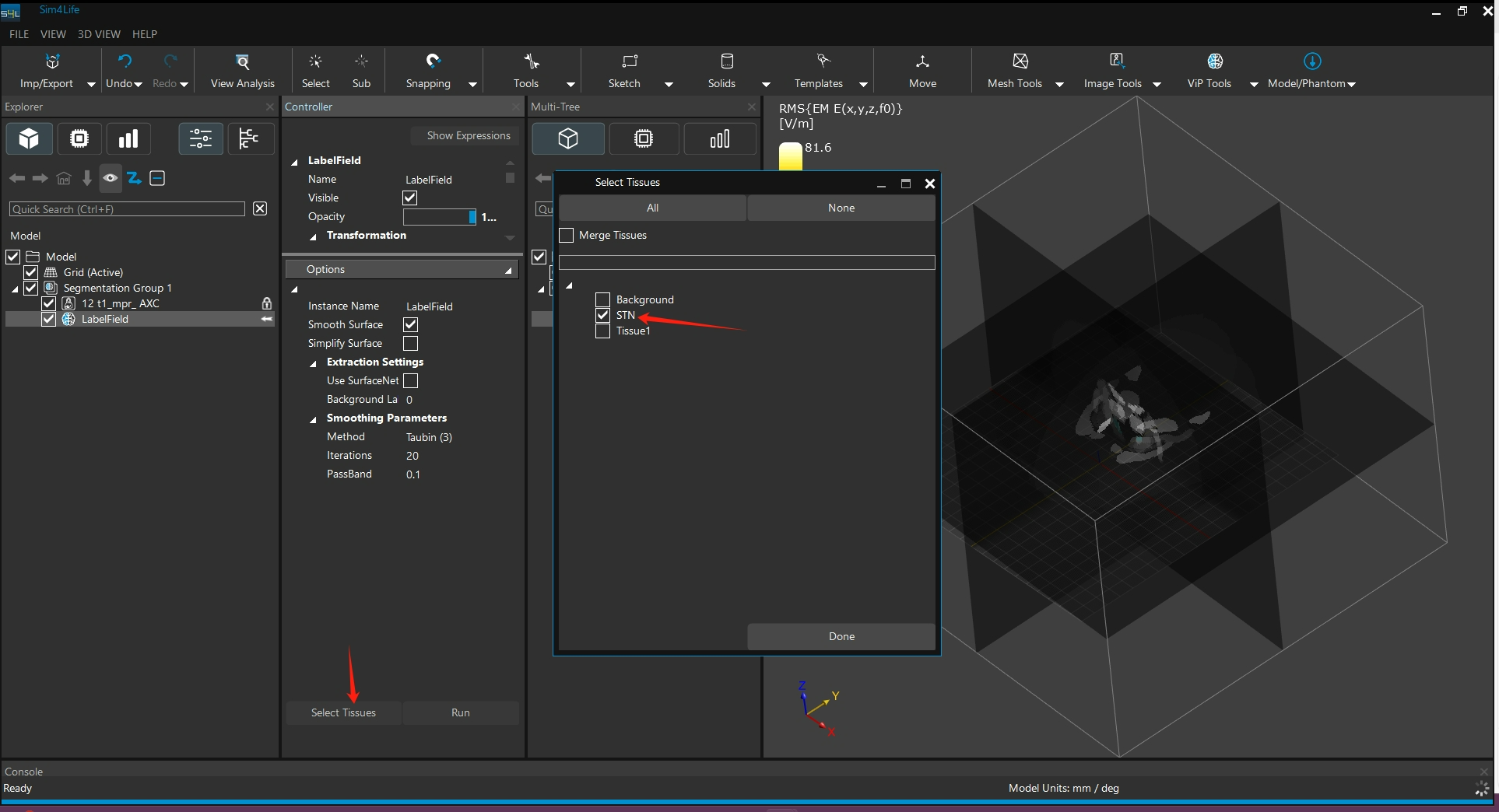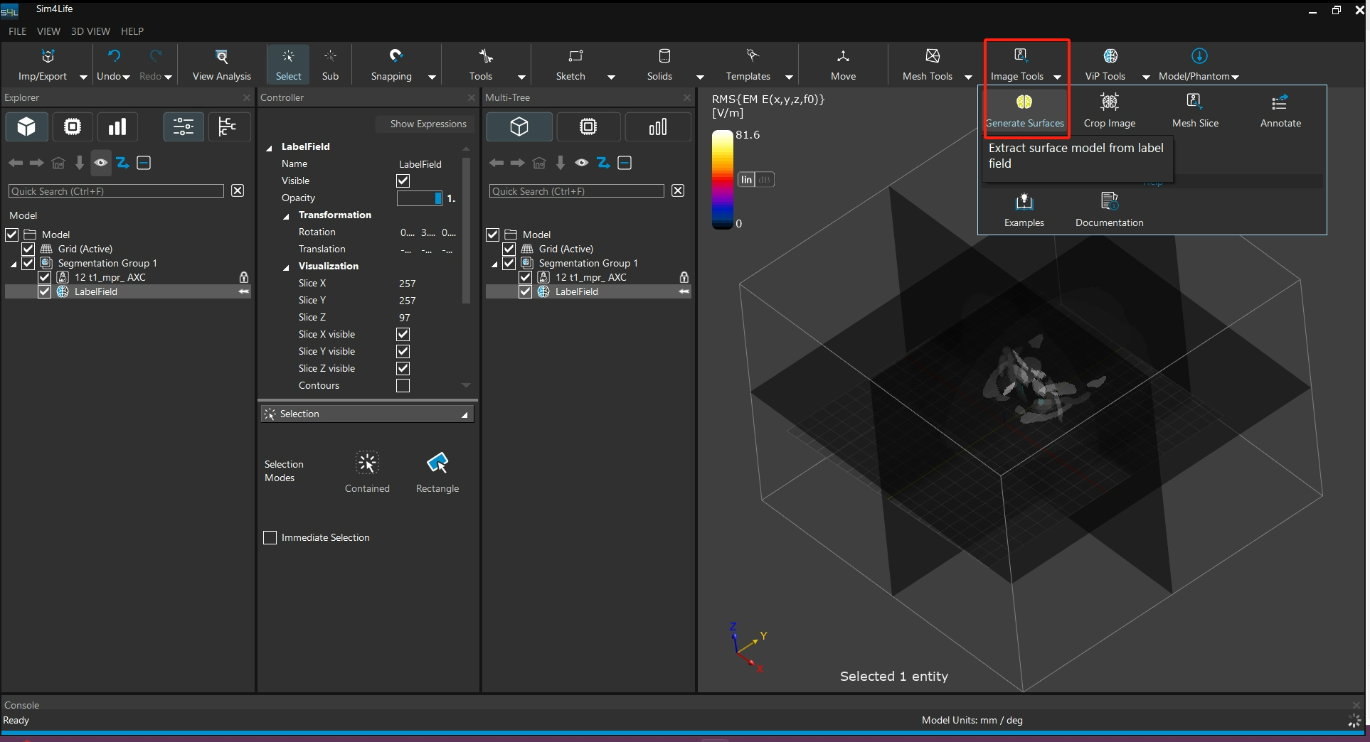 10. 回到 Sim4Life 畫面 → 點選 Image Tools → Generate Surfaces