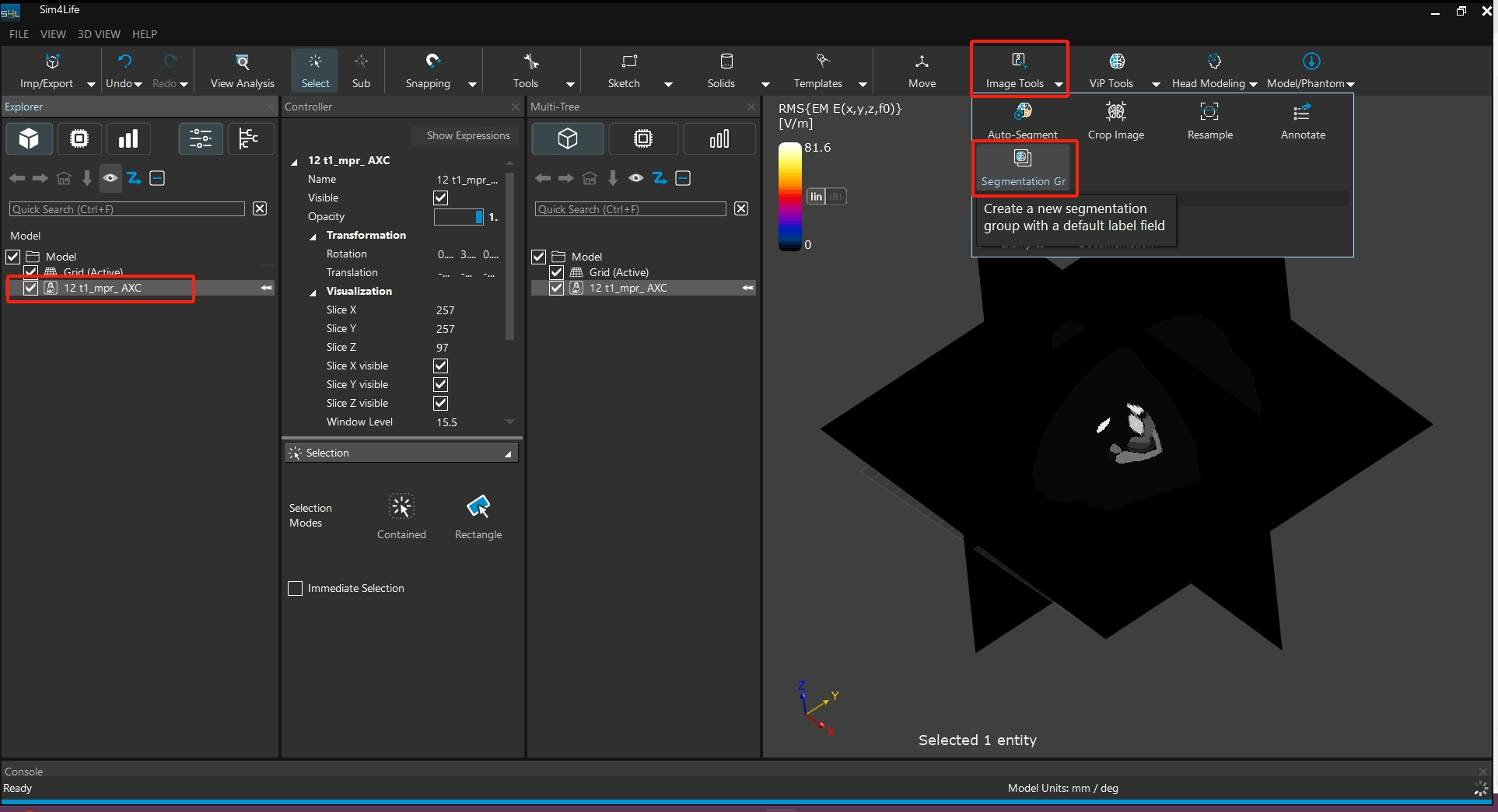 2. 選取影像資料 → 點選 Image Tools → Segmentation Group