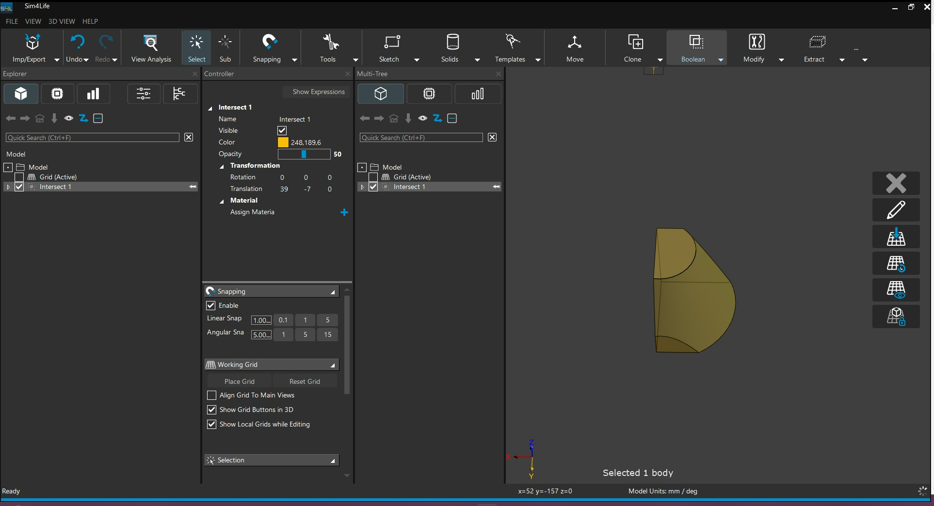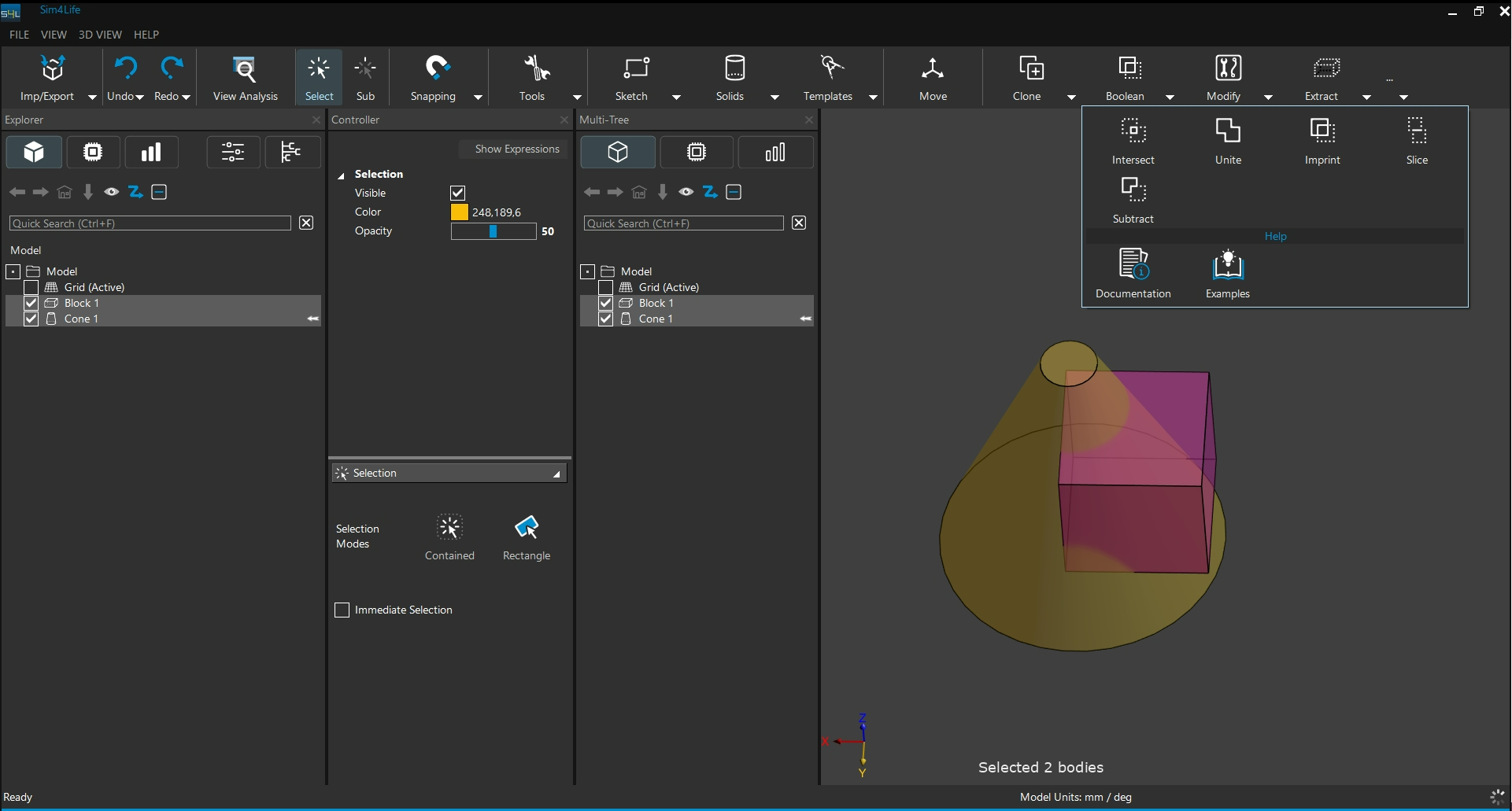 Intersect : 建立一個所有所選模型物件重疊區域的實體