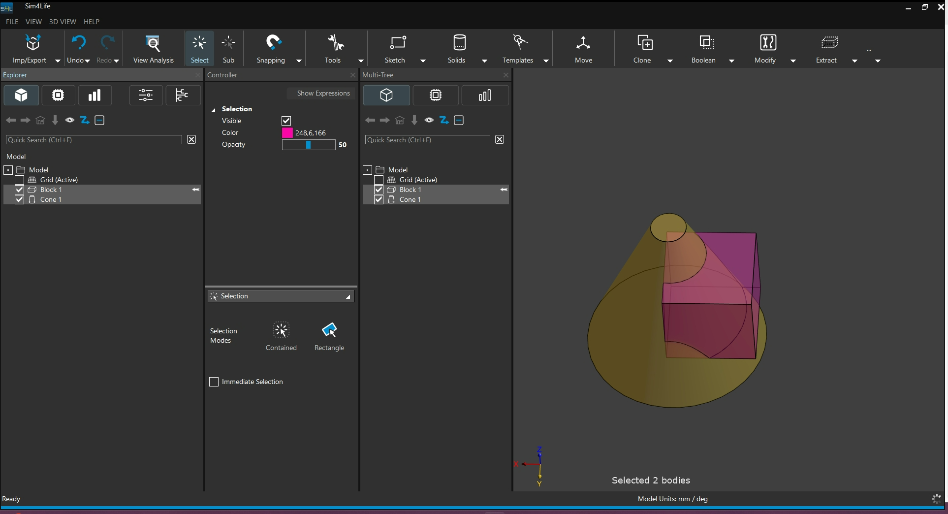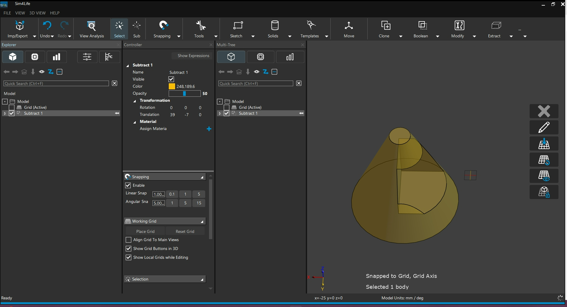 Subtract : 從第一個選取的模型中減去第二選取的模型
