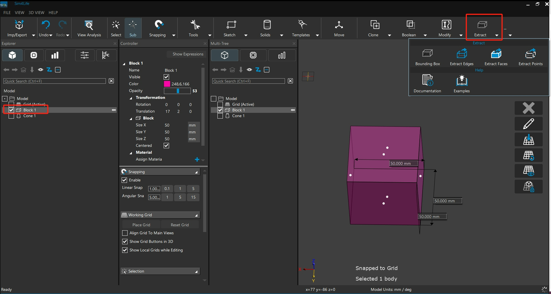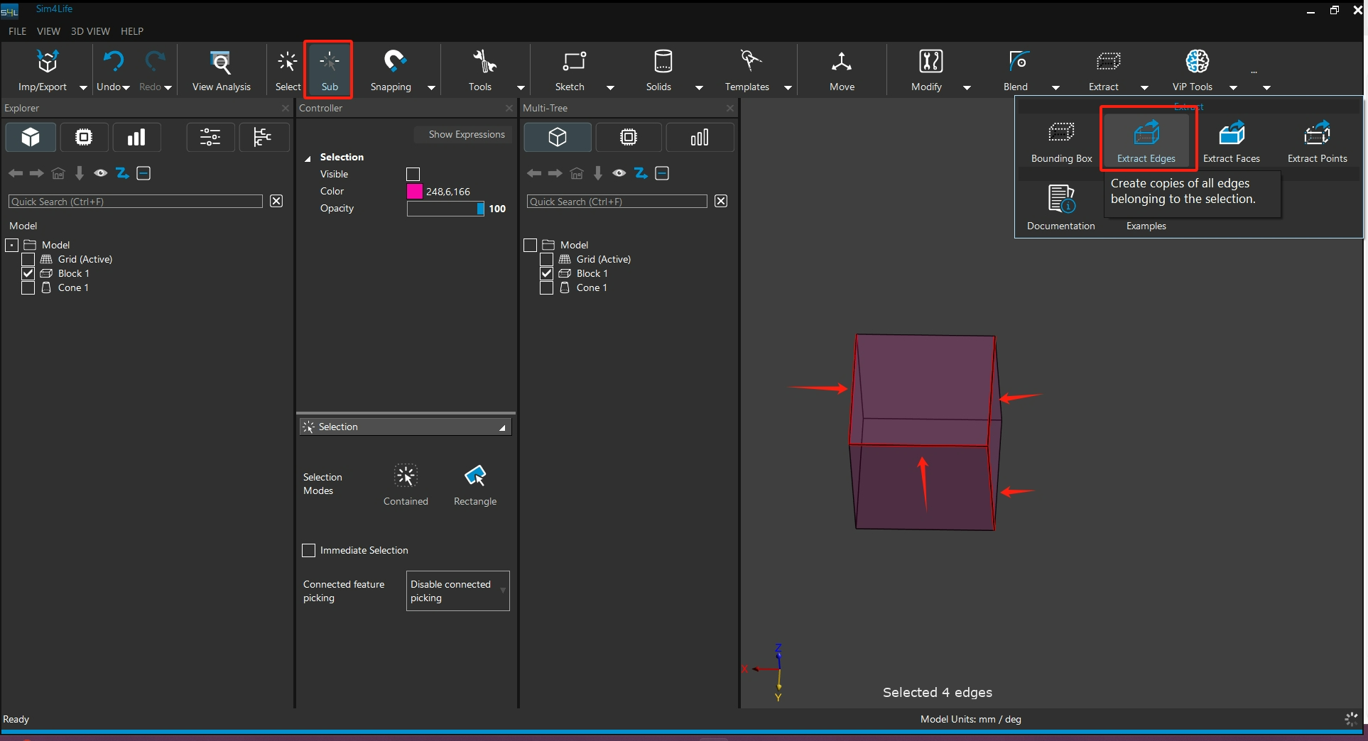 於Extract 功能中,依需求選擇對應類型,匯出邊選擇Extract Edges、面為Extract Faces、點為Extract Points