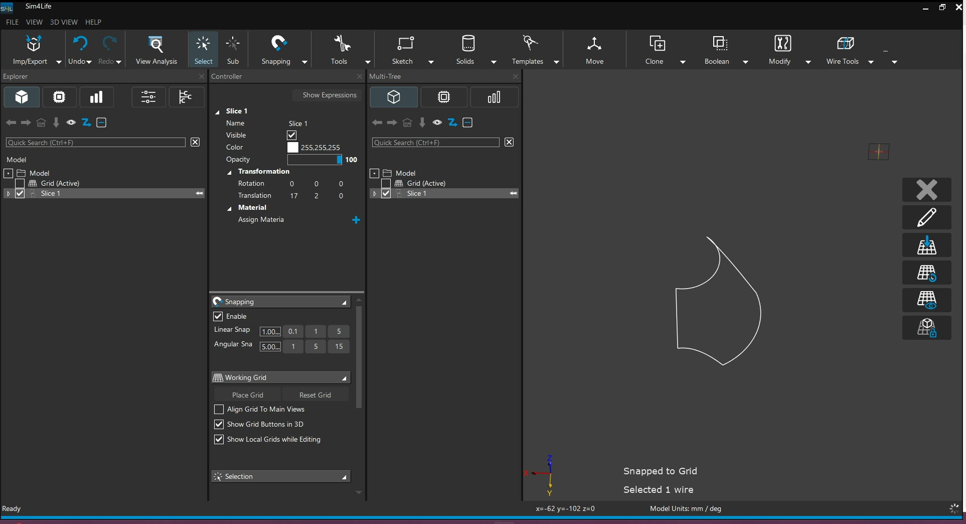 Slice : 在模型交集的部分提取面