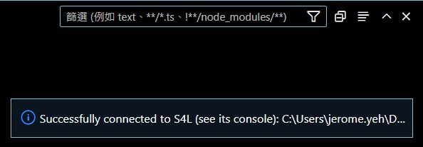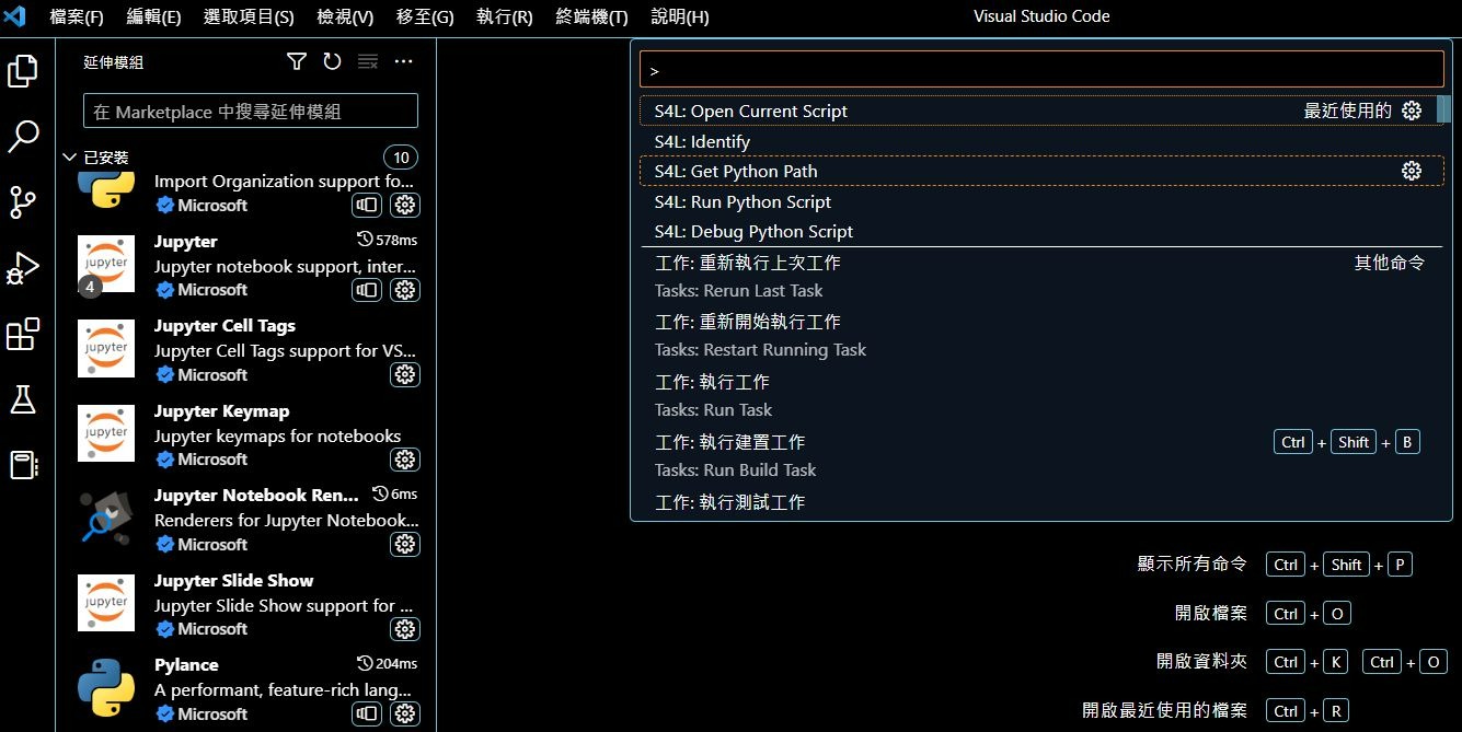 7. 在 VScode 按下 Ctrl + Shift + P 顯示 S4L 命令,選擇 S4L: Get Python Path 指定 VScode 的 Python 路徑