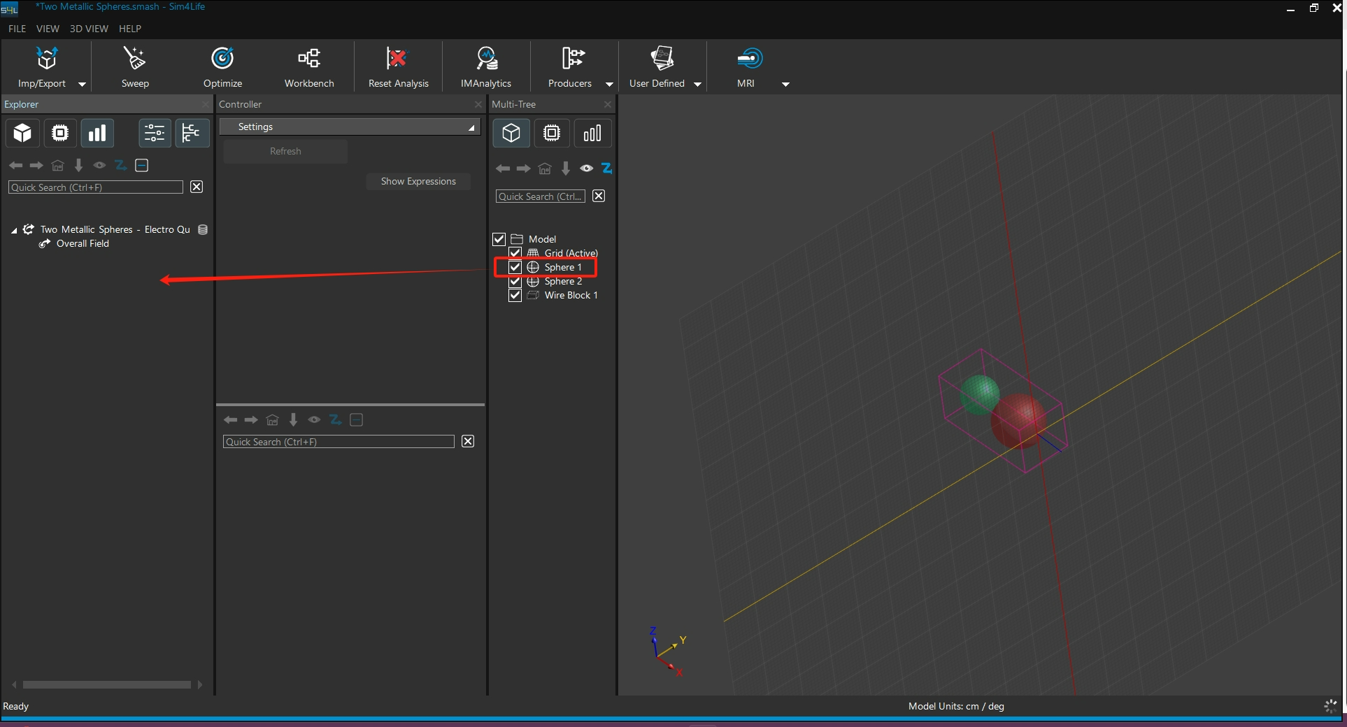 於 Multi-Tree中,選取欲觀察的模型曲面,拖曳至 Analysis