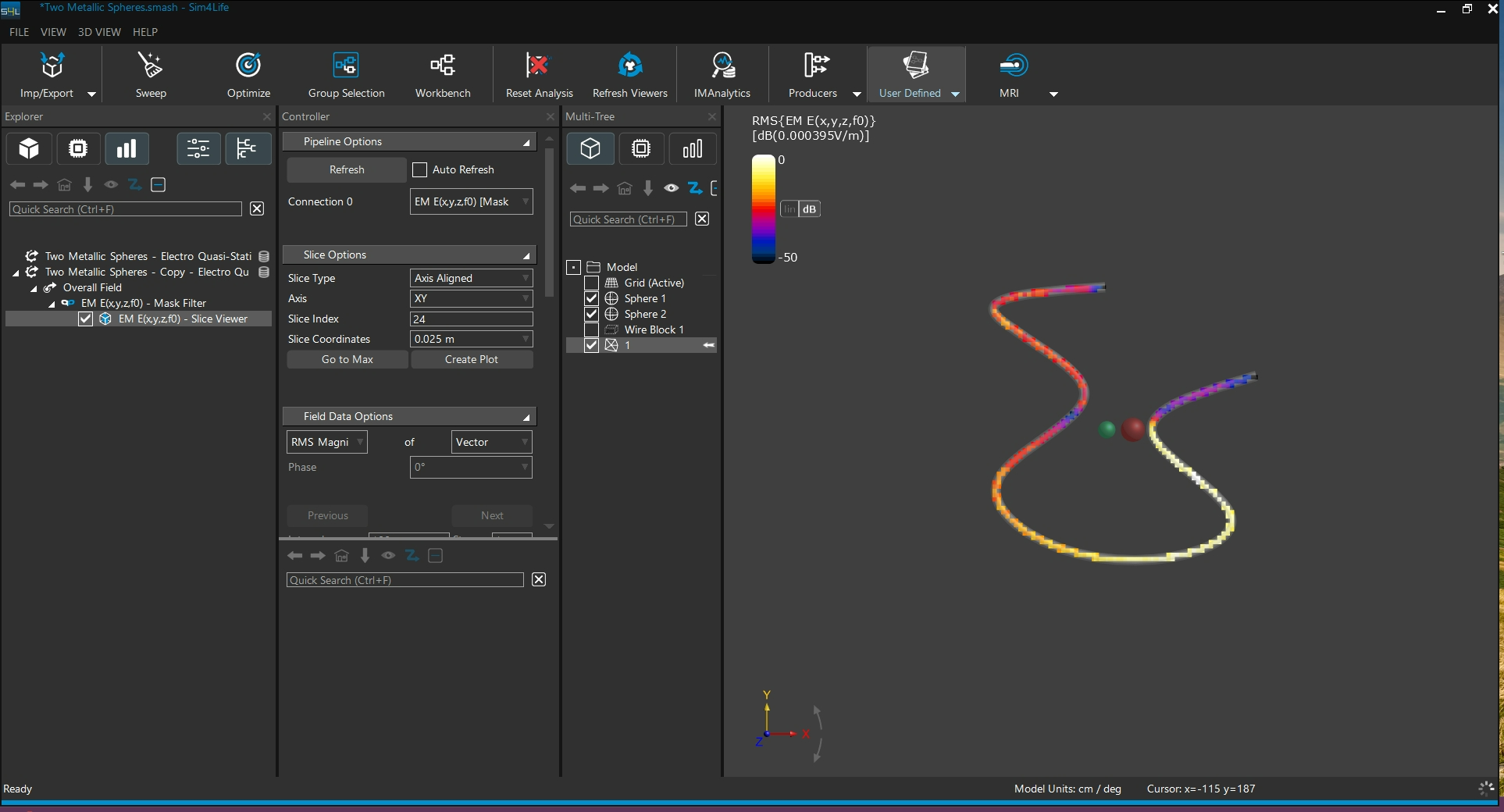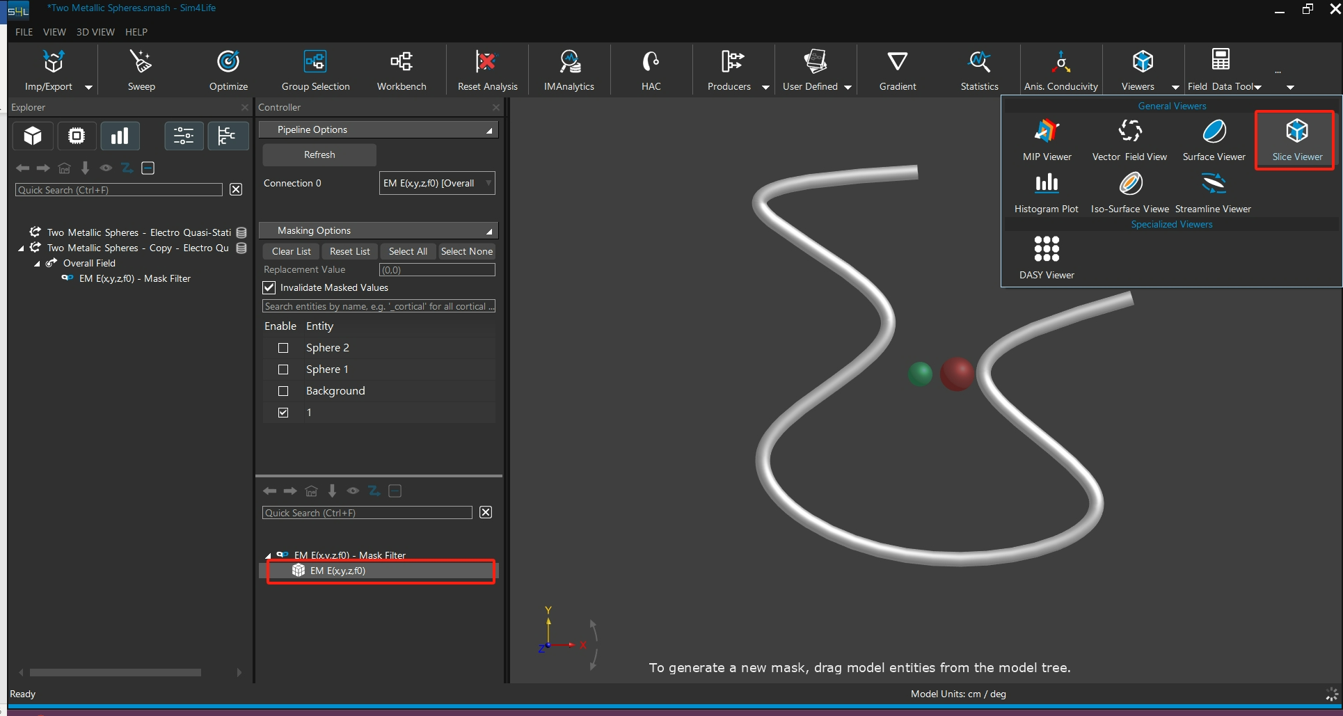 1.在 Analysis 頁面中,於左側 Explorer 視窗中點選欲觀察的電場資料,點選上方工具列中的 Field Data Tools > Mask Filter