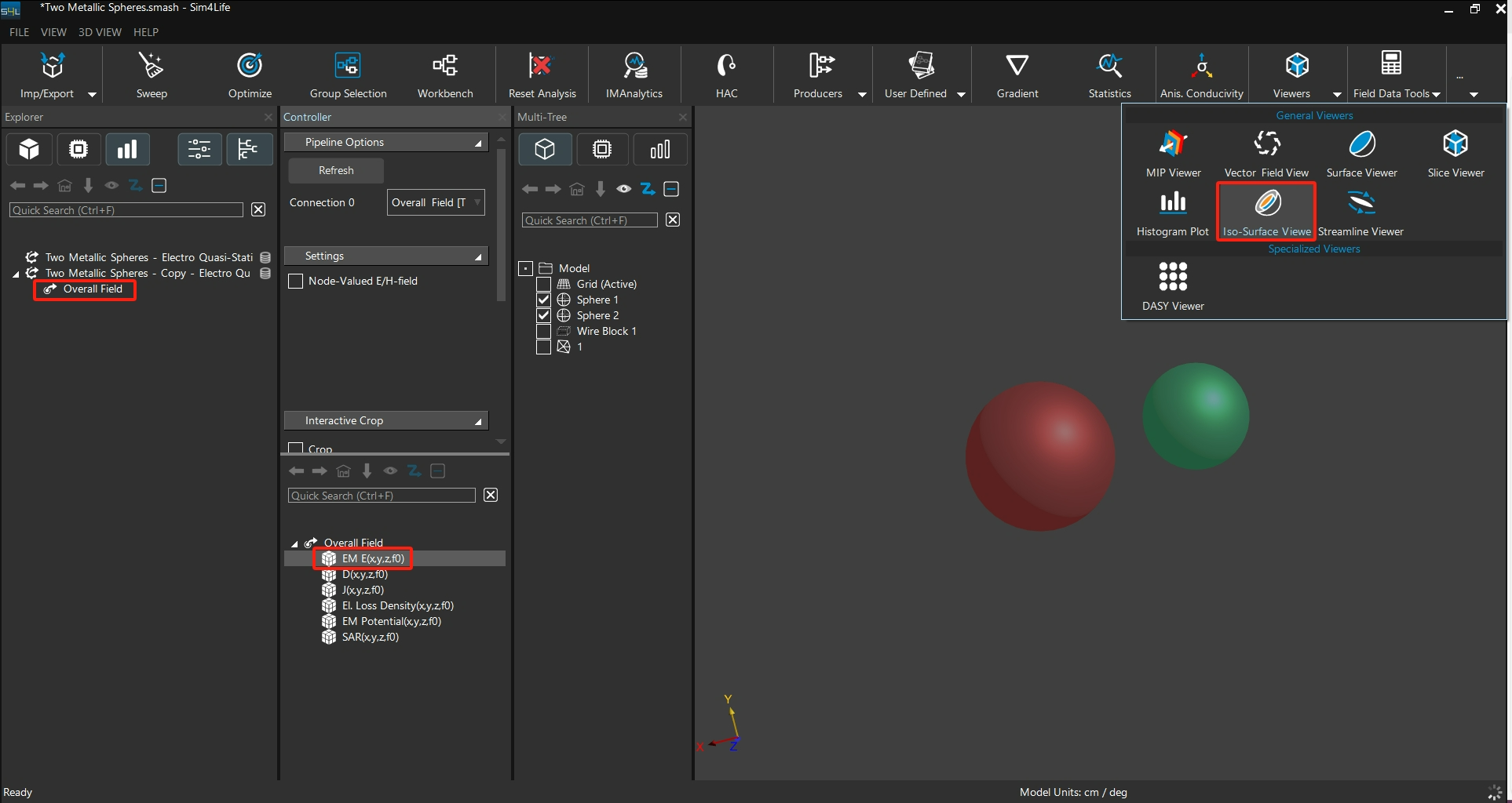 在 Analysis 中選擇所需的場結果( 如 EM E-field ) ,從上方Viewer中點選 Iso-Surface Viewer