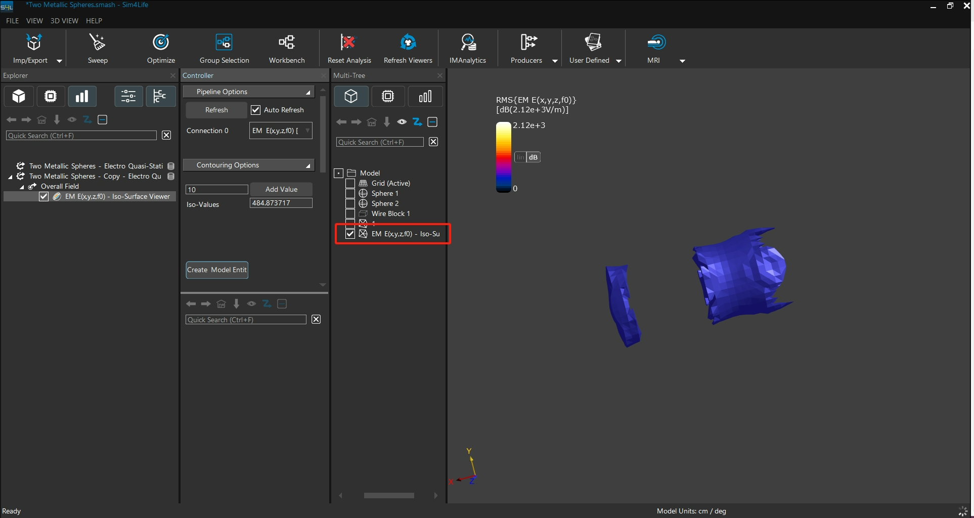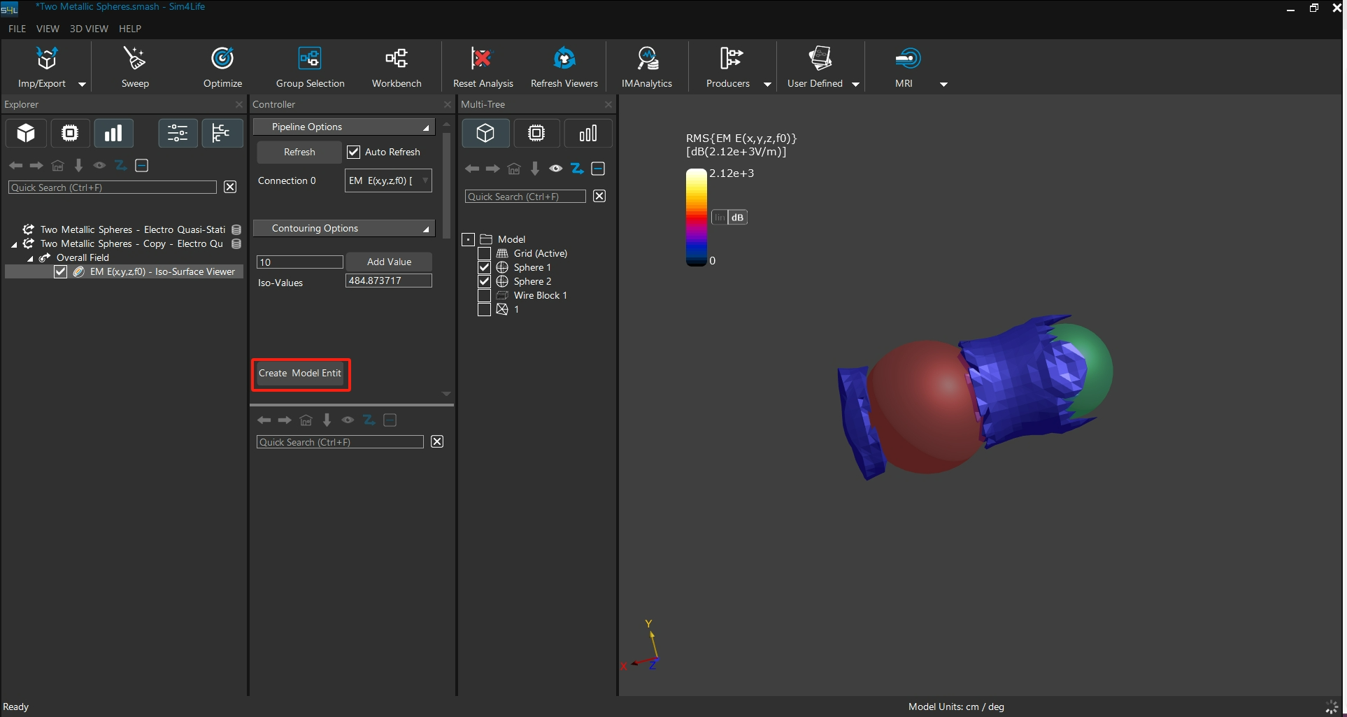 在中間的 Controllar 介面中點選Create Model Entity,系統會自動將目前顯示的等值曲面生成模型